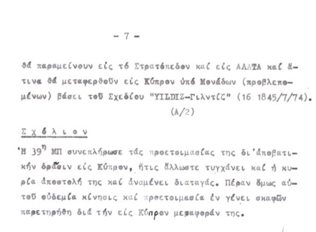 Ἐπιπροσθέτως, καταγράφονται οἱ προθέσεις τῆς Τουρκίας περὶ διχοτομήσεως τῆς Κύπρου, ὅπως προκύπτει ἀπὸ τὸ σχόλιο τοῦ ἰδίου δελτίου, ὅπου ἀναφέρεται ὅτι: [«…κύκλοι ὑψηλῆς ἀξιοπιστίας διαγράφουν σαφῶς τὰς Τουρκικὰς προθέσεις νὰ ἐπιβάλλουν δυναμικῶς κι ἐνόπλως τὴν διχοτόμησιν τῆς Νήσου ἐξαπολύοντες πρὸς τοῦτο δεύτερον πόλεμον ἐν Κύπρῳ, ἀδιαφορῶντας διὰ τὰς συνεπείας μιᾶς τοιαύτης ἐνεργείας των.»]