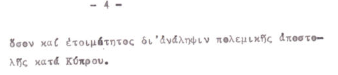 Ἀναφορικὰ μὲ τὴν Βρετανία: [«Ἡ Βρετανία ἀσκοῦσα λίαν ἐπιτυχῶς τὸν ρόλον τοῦ διαιτητοῦ, ἐκβιάζει ἀμφοτέρας τὰς πλευρᾶς, τὴν μὲν Τουρκίαν ἵνα ἀποτραπῇ ἐπεκτατικὸν ἐγχείρημα ταύτης ἐν τῇ νήσῳ, τὸ ὁποῖον θὰ ἔθετε ἐν κινδύνῳ τὰς ἐν Κύπρῳ βάσεις της, τὴν δὲ Ἑλλάδα ἵνα ἐπιδείξει ὑποχωρητικότητα, πρὸ τοῦ κινδύνου τετελεσμένου γεγονότος τῆς Τουρκίας ἐν τῇ νήσω πρὸς ἀποτροπὴν ναυαγίου τῶν συνομιλιῶν τῆς Γενεύης».]